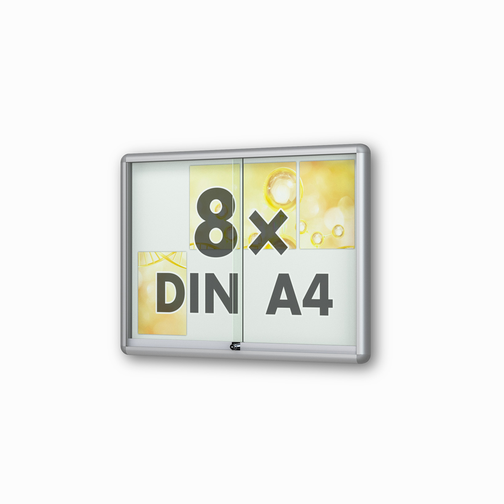8 x DIN A4 Schaukasten Moveo - "die Schulvitrine" - mit Brandschutzklasse A1 - Rollengelagerte Schiebetüren✓ abschließbar✓ ESG-Sicherheitsglas✓