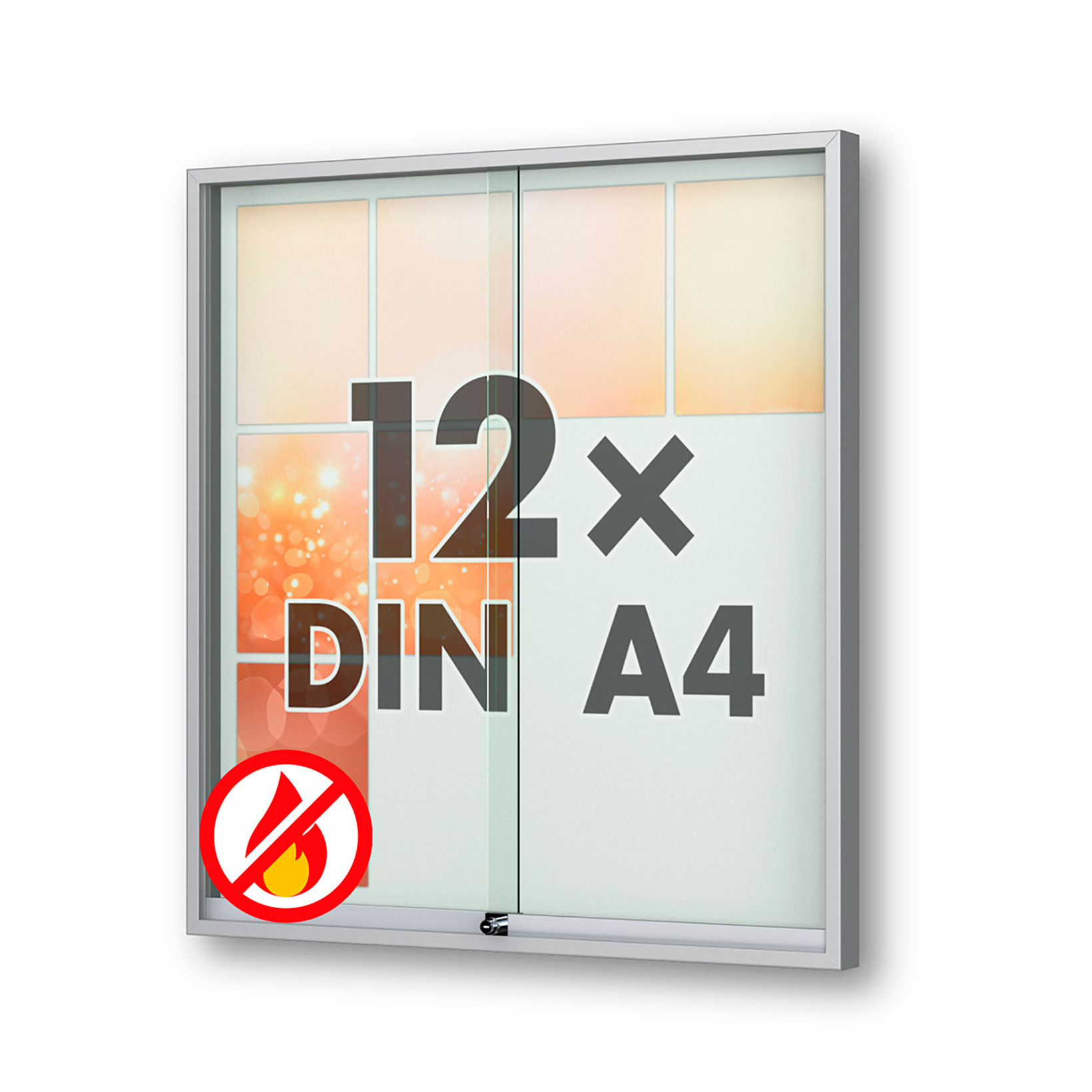 | Plakatvitrine: | Brandschutz, Montageort: Innen, Wandmontage, abschliessbar, mit Schiebetüren |