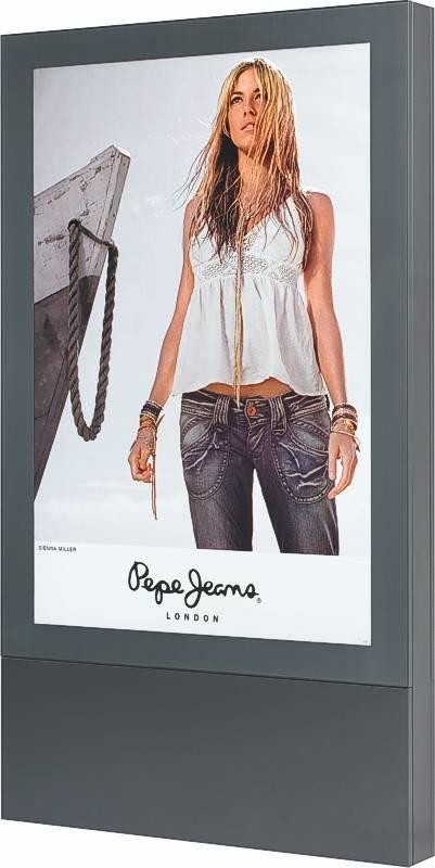 Werbevitrine City Light - einseitig / beidseitig - Standmontage Plakatvitrine im City-Light-Posterformat, absolut wetterfest und perfekt für den Außenbereich geeignetRobuste Konstruktion mit verwindungssteifen Alu-Profilenvollflächige Hinterleuchtung mit LangfeldleuchteWunschfarbe nach RAL-Farbton möglich Größe - 1346 × 2411 (inkl. Sockel mit H=500 mm)einseitige Variante:   B×H×T 1346 × 2411 & × 163 mm (inkl. Sockel mit H=500 mm)beidseitige Variante: B×H×T 1346 × 2411 × 216 mm (inkl. Sockel mit H=500 mm) Farbe - Eloxierung in Silber / Alu-Natur optional RAL Farbton nach WunschMontage - Freiaufstellung auf einem MonosockelBeleuchtung – optional mit Langfeldleuchten oder LED-LichtleitplatteÖffnung - Drehflügel mit verdeckt liegenden Drehbändern zur seitlichen Öffnung mit ÖffnungsbegrenzerVerglasung - Frontscheibe aus ESG-Sicherheitsglas, eingefasst in GlasleistensystemSchließung - Schließung als Schnappverschluss-System, Betätigung mit 6-Kant im unteren Bereich Hinweis!LED-TechnikEin fertig montiertes Beleuchtungsset aus energieeffizenten, leuchstarken LEDs mit deutlich geringerem Stromverbrauch gegenüber herkömmlichen Beleuchtungen. Wichtig! Verdrahtung und Anschluß der Beleuchtung an das Stromnetz muss vor Ort durch entsprechend geschultes und fachkundiges Personal erfolgen!
